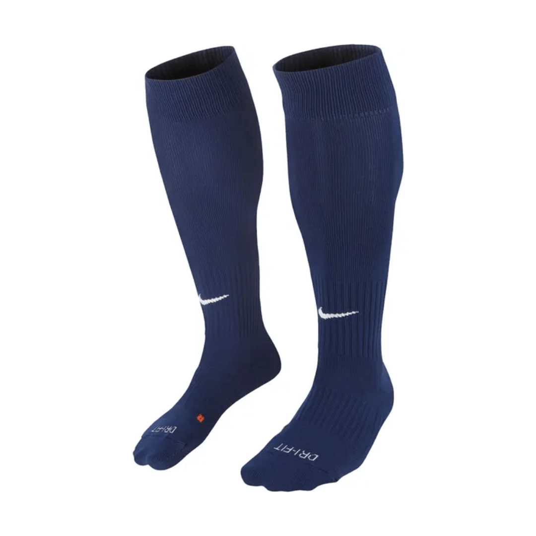 Las calcetas de fútbol Nike Classic en color azul son un accesorio esencial diseñado para ofrecer comodidad y soporte en el campo de juego. Confeccionadas con un tejido especializado que absorbe el sudor, estas calcetas ayudan a mantener los pies secos y cómodos durante todo el partido o entrenamiento. Su diseño de corte alto proporciona una cobertura segura hasta la pantorrilla, ideal para usar con espinilleras, y un ajuste ceñido que ofrece un soporte estratégico en el arco y el tobillo. Además, cuentan con una amortiguación en zonas clave que reduce la presión del calzado y absorbe el impacto, permitiendo que los jugadores se concentren por completo en su rendimiento.