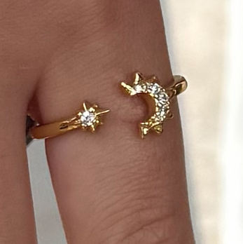 Su diseño inspirado en el cielo nocturno combina estrellas y una media luna brillante que captura la luz con suavidad, creando un efecto romántico y encantador.