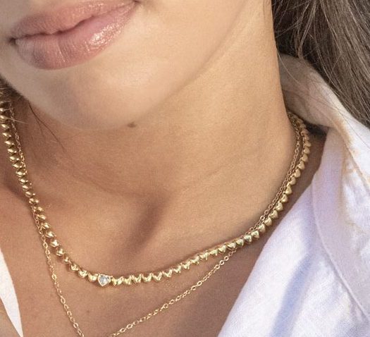 Allegra irradia dulzura y elegancia en cada detalle. Su cadena de pequeños corazones crea un brillo sutil y femenino.