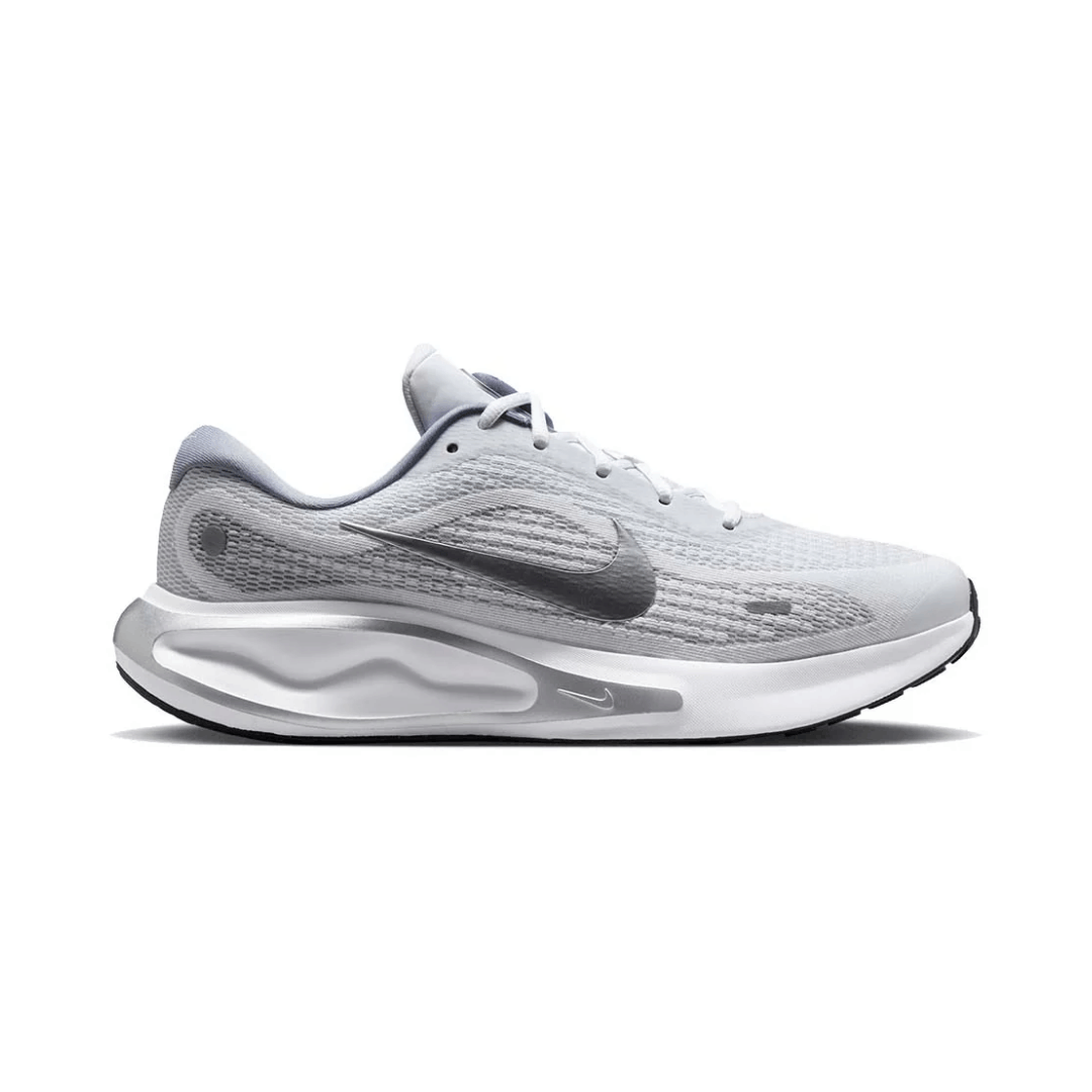 Las Nike Journey Run Road Running Grey para hombre están diseñadas para ofrecer comodidad y soporte en cada kilómetro. Su mediasuela con espuma suave brinda una amortiguación ligera que reduce el impacto, mientras la parte superior de malla transpirable mantiene el pie fresco durante carreras largas. La suela de goma con patrón resistente proporciona tracción confiable en carretera y estabilidad en cada pisada. Su diseño en gris aporta un estilo moderno y versátil que combina fácilmente con cualquier outfit deportivo, convirtiéndolas en el calzado ideal para corredores que buscan rendimiento, ligereza y durabilidad en sus entrenamientos diarios.