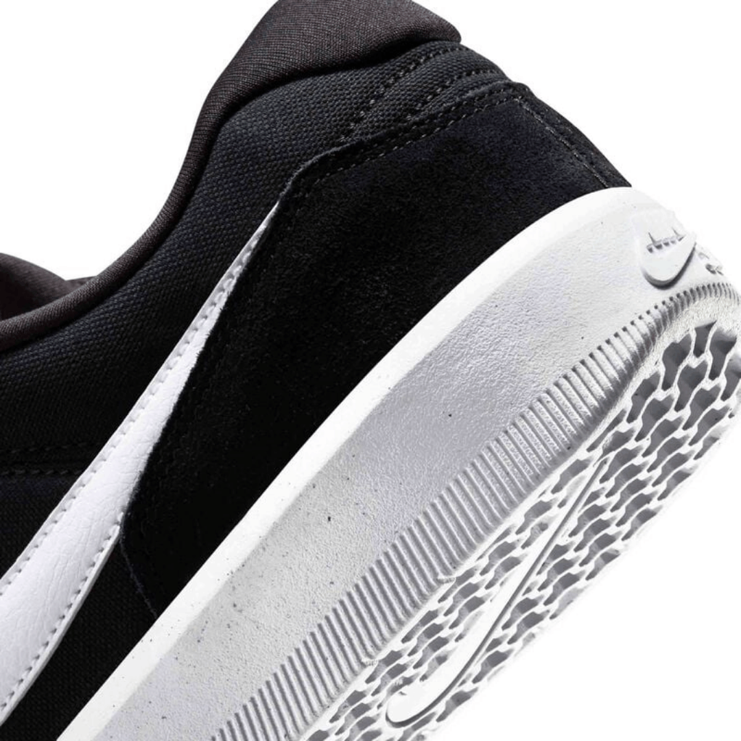 El Nike SB Force 58 Blk Mn es una zapatilla de skate que combina la durabilidad y flexibilidad de una suela tipo cupsole con la estética y ligereza de una suela vulcanizada. Su parte superior, confeccionada en ante y lona, ofrece un ajuste cómodo y transpirable, mientras que los orificios de ventilación en la puntera y el Swoosh perforado proporcionan una mayor circulación de aire. La suela exterior cuenta con un patrón de tracción tri-star que asegura un excelente agarre y control sobre la tabla, haciendo de este modelo una opción versátil y funcional para el skate.