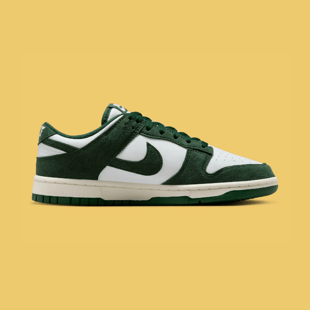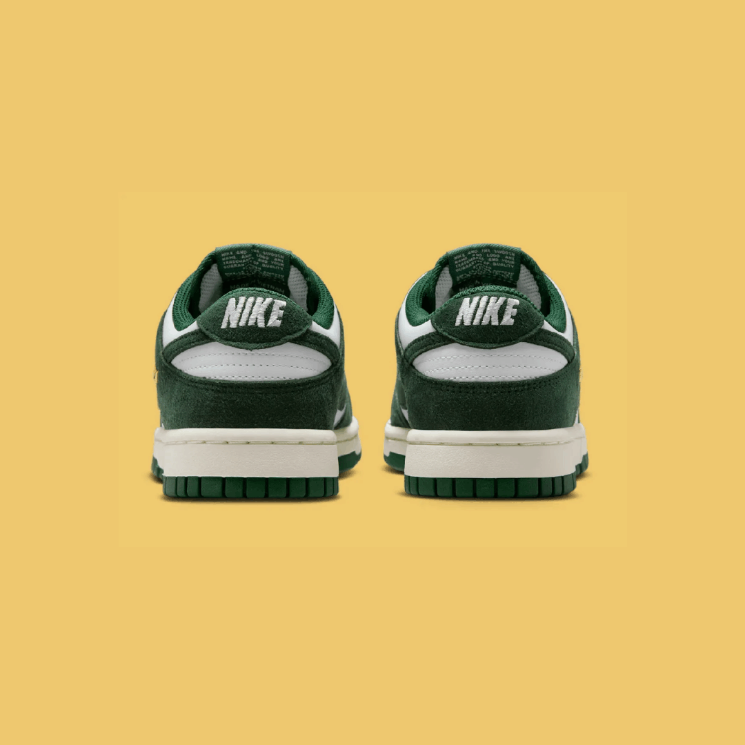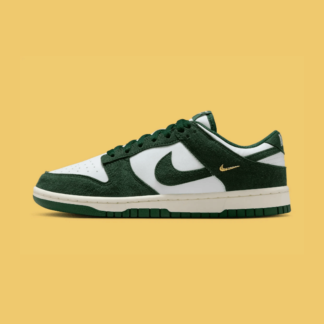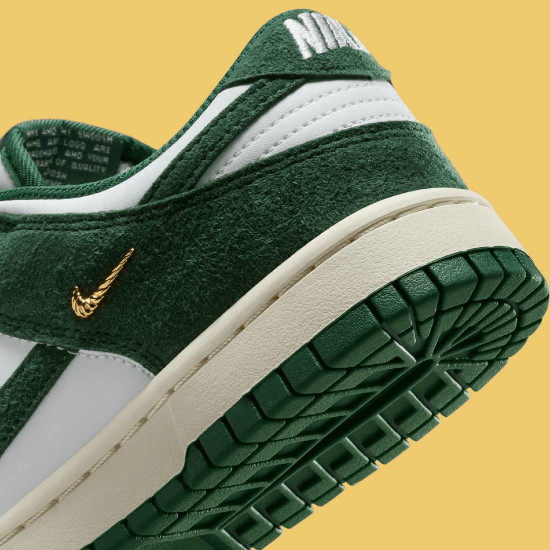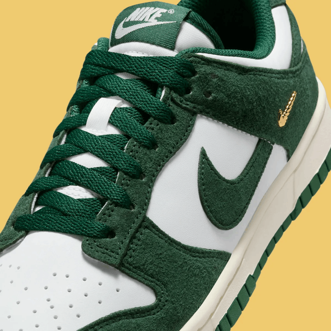 Las Nike Dunk Low “Gorge Green” para mujer reinventan el clásico diseño con un toque fresco y sofisticado, destacando un mini Swoosh dorado en un nuevo lugar que captura todas las miradas. Estas zapatillas combinan una base de cuero blanco suave con superposiciones de ante verde intenso, evocando un estilo retro inspirado en los colores universitarios de los años 80. El detalle estrella, un mini Swoosh metálico dorado ubicado en el talón lateral, justo detrás del Swoosh principal, añade un brillo sutil que eleva la estética sin perder la esencia minimalista. La entresuela blanca y la suela de goma verde completan el look, ofreciendo un equilibrio perfecto entre comodidad y tracción. Diseñadas con materiales premium que envejecen con carácter, estas Dunk Low, con un precio aproximado de $125, son ideales para quienes buscan un calzado versátil que fusiona herencia, estilo y un toque de lujo moderno, disponibles a partir de julio de 2025 en Nike y minoristas selectos.