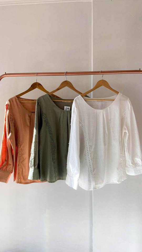 Blusa elegante de mangas largas con cuello redondo, tiene bordado es de corte ajustado y un estilo vintage, es una tela suave especial para nuestro clima