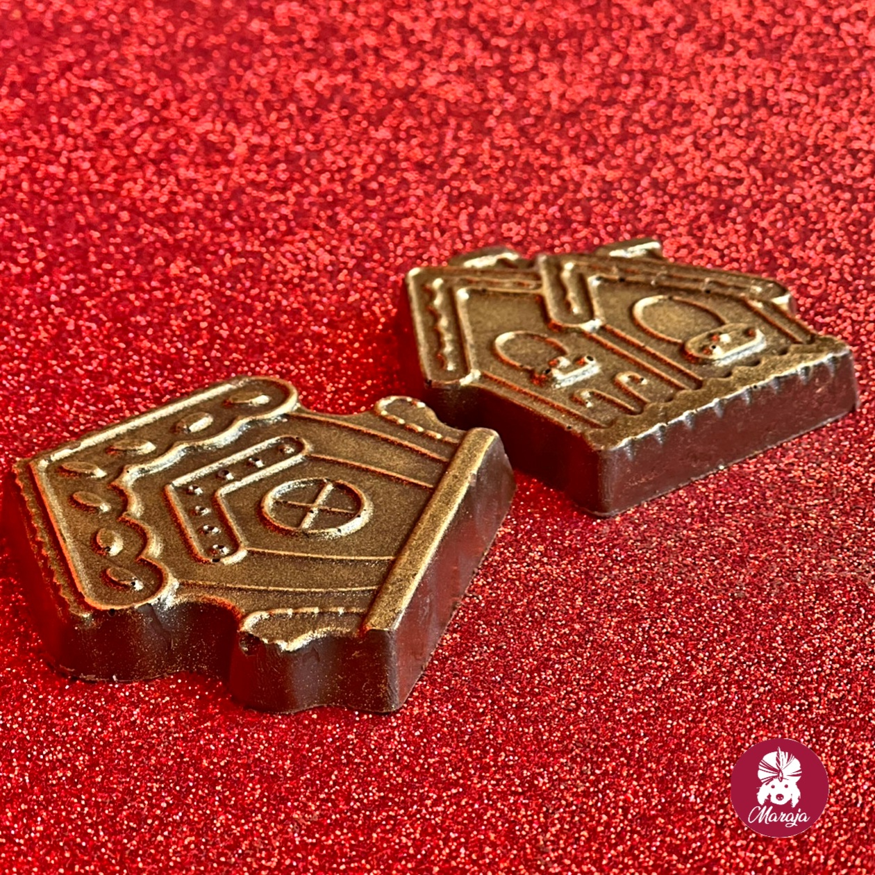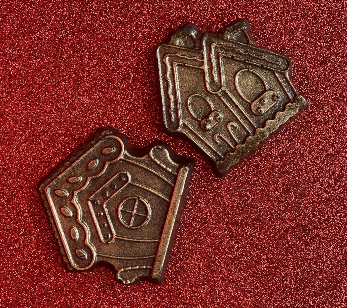 Mini casitas de chocolate con detalles navideños, decoradas a mano. Ideales para regalos, centros de mesa o para acompañar tus eventos de fin de año.Peso aproximado: 45 g